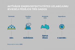 Pētījums atklāj, ka ieguldījumus enerģijas taupīšanas pasākumos visbiežāk veic lielie ražošanas uzņēmumi (44%) un būvniecības nozares pārstāvji (27%). Turklāt vairākums (80%) no šiem uzņēmumiem nodarbina vairāk nekā 250 darbiniekus un to apgrozījums pārsniedz 260 tūkstošus eiro gadā. Saskaņā ar pētījuma datiem, energoefektivitātes paaugstināšana ir vienlīdz būtiska uzņēmējiem gan no Rīgas, gan citviet Latvijā.